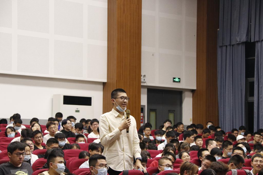 “没谈过恋爱的同学请举手?”讲座初始,沈力晔抛出的问题瞬间点燃了学生的听讲热情。学生根据自身经历踊跃发言,提出自己的恋爱观,并与沈老师交流对两性关系的认识。通过初步了解,沈力晔向学生从科学层面讲解科学对于身体发展阶段、心理发展阶段的划分,引导学生正确认识身心健康的重要性。