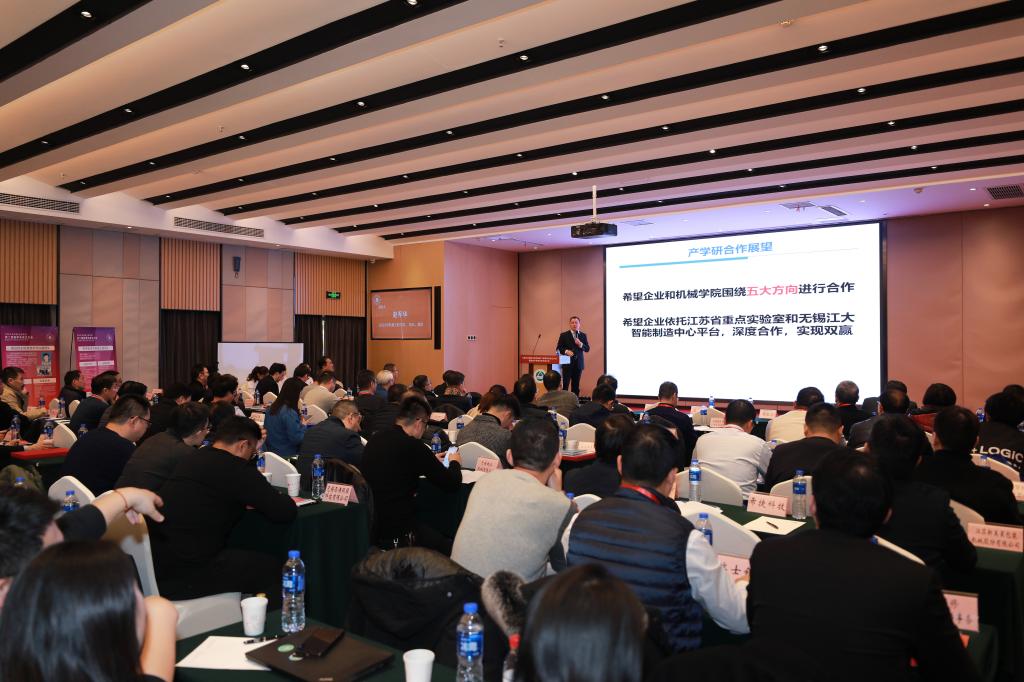 大会下半场进行大会主题报告。会议围绕机械行业相关政策、发展现状、企业需求、科技前沿,滨湖区科技局副局长花溪君作了政府政策宣讲报告,中建材智能自动化研究院有限公司副书记薛根、合肥中辰轻工机械有限公司总经理查正旺、毅合捷汽车科技股份有限公司董事长刘全、无锡隆玛科技股份有限公司董事长杨朝晖、南京乐鹰商用厨房设备有限公司总经理赖夏荣等企业家做了企业需求报告;学院5位学科带头人教授分别就智能包装技术与装备、微纳制造技术与表面工程、智能检测技术与机器人工程、食品先进加工技术与装备、先进设计与智能制造等科研方向作了介绍报告。