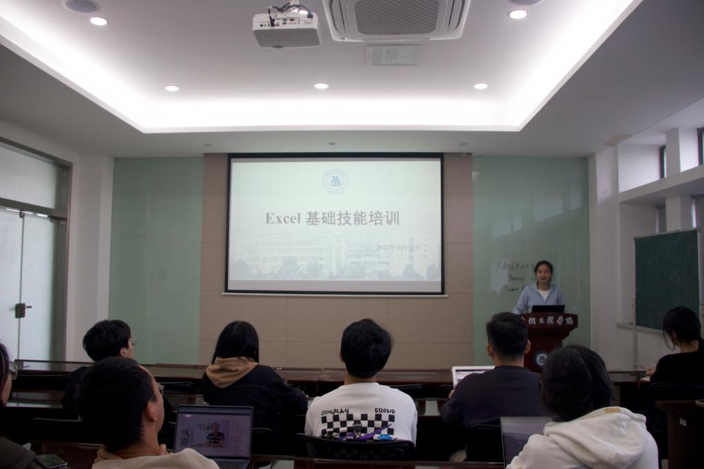 基础办公软件培训由萧欣彤主讲。她结合实际工作案例,分别从快捷键、常用函数、透视数据表三个方面向同学们介绍了Excel的常用操作,着重讲解了Vlookup函数的使用方法,强调选定数据位置、锁定单元格等一些在使用函数过程中容易忽略的注意事项,加深了同学们对所学内容的理解。