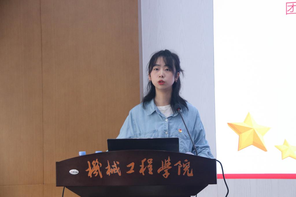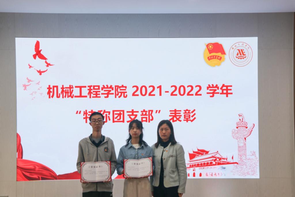 特称团支部展示环节中,“秦邦宪特称团支部”包装1901团支部廖恺芯、“雷锋特称团支部”机械1901团支部黄君怡分别就团支部基本情况、获得荣誉、常规工作、特色活动等方面做了详细介绍,并寄语在场学弟、学妹,应努力提升自我,在小我中成就大我,在大我中实现小我,与团支部同成长、共进步。展示环节后,孟召双为两个团支部颁发荣誉证书,表彰其优异表现。
