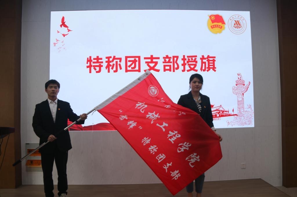 最后,潘智琦为两个特称团支部授旗,并表示,希望两个团支部在接过特称旗帜后,能够扛起特称团支部的责任,成为学院基层团支部的表率。