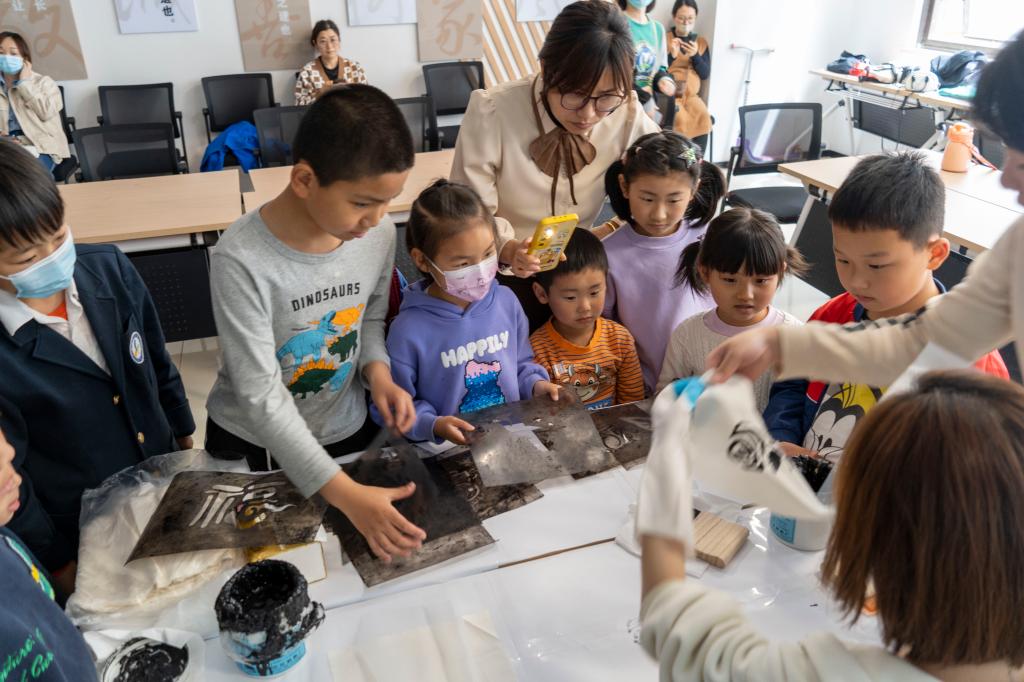 下午2点,活动正式开始。纺织与科学工程学院科协的同学们带来开场活动“刻板印刷”,带领社区小朋友们用色彩鲜艳的颜料对纺布进行印染,与小朋友们一起探索富有魅力的染织文化。