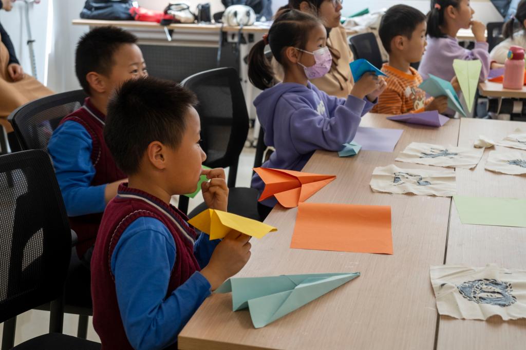接着,机械学院科创活动中心结合三个生动实验展开科创讲堂,由于悦秋主持。主讲人王晨旭从打破吉尼斯世界纪录的“苏珊纸飞机“的开始,引入对纸飞机飞行原理的讲解,并现场教小朋友制作蝴蝶纸飞机和滑翔纸飞机。经过简单试飞,小朋友们的飞机都取得了不错的飞行效果。