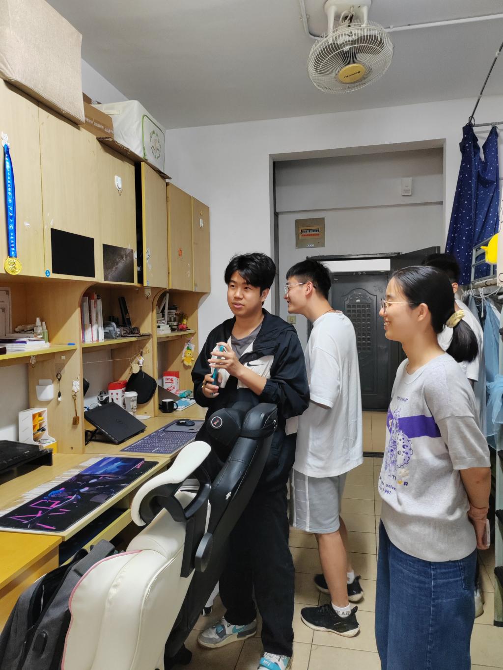 党支部党员在辅导员带领下分别来到榴园与桃园宿舍园区,在对宿舍布置进行指导的同时就学习生活等方面问题与2022级本科生进行交流,分享自身经历。新生们对专业前景、未来规划、社团发展等方面向学长学姐提出自己的疑问,党员们认真答疑解惑。机械2204班朱庭玉表示:“党员们来到宿舍交流对于我们来说非常方便,牛云腾学长的分享非常生动,帮助我了解了机械前沿和机械学子的奋斗方向,为我当下的学习发展提供了指导。”