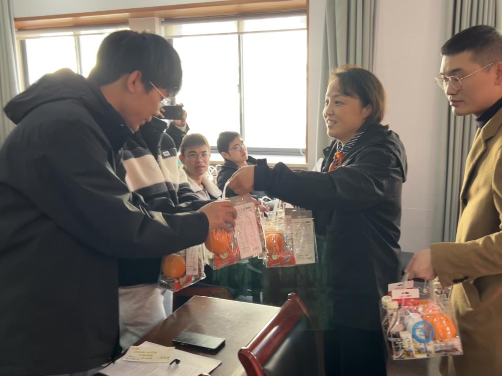 现场老师们为考研学子发放“考研助力包”并送出诚挚祝福。定制礼包中装有七件暖心礼品,祝福满满:一套涂卡笔,祝愿“妙笔生花”;一瓶咖啡,祝愿“啡”同凡响;一盒牛奶,祝愿“牛气冲天”;一颗橙子,祝愿前“橙”似锦;一板巧克力,祝愿“巧克”难题;一袋蛋糕,祝愿“步步登高”;一张祝福卡,承载着机械学院师生们对大家满满的祝福,它们均由班主任老师们用心手写。