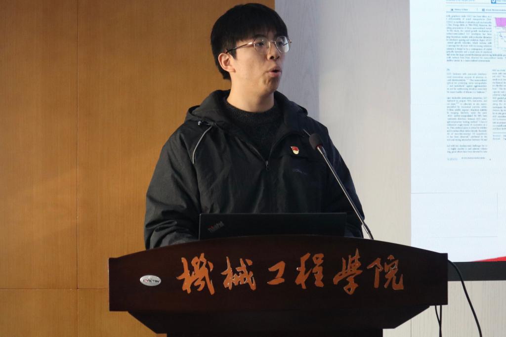 支部叶鹏、王鹏飞、彭鑫三位同学结合自身成长依次分享了对“智创时代机械学子应当如何作为”的思考。叶鹏本硕就读于best365网页版登录官方网站,本科期间参与工程实践与创新能力大赛获全国银奖。他从精益求精在竞赛实践中寻求突破的经历讲起,分享了从本科到研究生的身份转变与适应过渡,鼓励大家以平常心面对生活中的各种困难与瓶颈,不退缩、敢担当,以积极心态突破自己,成长成才。王鹏飞荣获2022-2023年度国家奖学金,是一名全面发展的机械体育人,本硕期间共斩获校运会金牌11枚。他分享了“无体育,不机械”的成长故事,讲述了机械田径队从低谷到壮大再到突破的历程。他认为体育对机械学子意义重大,不仅体现在强健体魄,更体现在磨练意志、坚定目标、敢打敢拼、团队配合的体育精神,鼓励大家成为有韧性的机械青年。彭鑫硕士期间发表论文两篇,授权发明专利一项,参与国家自然科学基金等项目,现已签约远景能源,投身新能源风电行业。他介绍了自己的研究方向,分享了自己在科研与就业中立足国家需求、投身智能制造的选择。他认为青年成长中最重要的是锻炼发现问题、分析问题、解决问题的能力,以及着眼国家需要、将个人成长融入社会发展全局的担当。