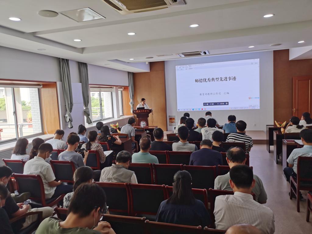 最后,高雪梅传达了学校《师德专题教育方案》《加强改进新时代师德师风建设的实施意见》和“师德宣传教育周”等文件精神,宣讲了教育部教师工作司汇编的《师德优秀典型先进事迹》,并希望全院教师弘扬爱岗敬业、为人师表、乐于奉献的优良师德,将 “立德树人”教育理念有机融入教学,以“三全育人”新成效凝聚机械学科建设和学院发展新动能。
