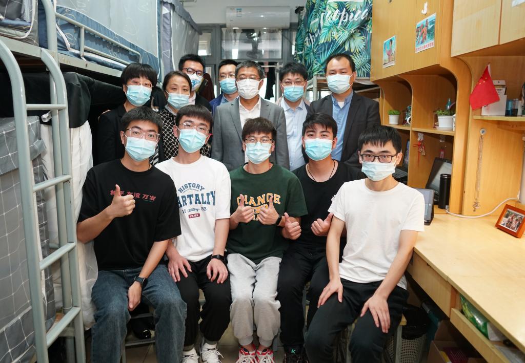 陈卫首先对宿舍7名同学全员升学表达了祝贺,他从课程与专业、个人与集体、当下与未来等几个方面与学生们进行了深入交流,并征求听取了同学们对学校人才培养和建设发展的意见建议。走访中,围绕同学们所在君远学院的培养模式和课程设置,陈卫表示,君远学院是学校培养高素质创新型人才的一种创新和探索,相关成果曾获得国家级教学成果奖一等奖,其人才培养是经过实践检验卓有成效的一种培养模式。他指出,学生的主业是学习,宿舍同学能够全员成功升学是集体一起努力奋斗的结果,希望大家能够多与学弟学妹分享奋斗经验,将这种优秀传承下去,让优秀成为一种习惯;同时期望大家能够再接再厉,再攀高峰。