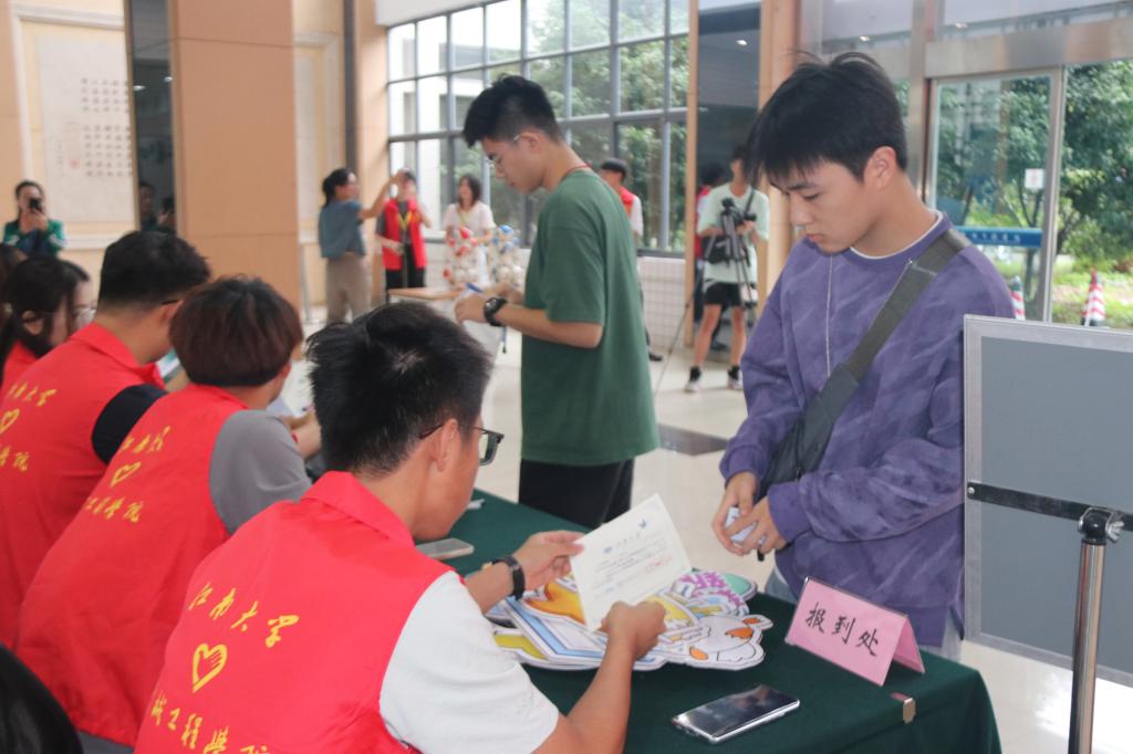 “机械学院的请来这边!”在橙园学生宿舍新生下车点,见一位best365网页版登录官方网站的新生和家长拖着4个行李箱,由高年级学长组成的志愿者忙撑着伞上前,帮助他们把行李搬上九楼,安放在寝室里。“整个报到流程非常顺利,我来报到时,辅导员和副班们也早早就在报到处等待大家,学长学姐非常热情,学院的安排很周到。”住在34号楼907寝室的新生石瀚文说,因为辅导员和副班几天前就在群里向新生详细讲解了现场报到的注意事项,他和室友都已经完成报到,顺利入住。每一次“搭把手”,暖心相助,让每一位机械人顺利入住新的“小家”。