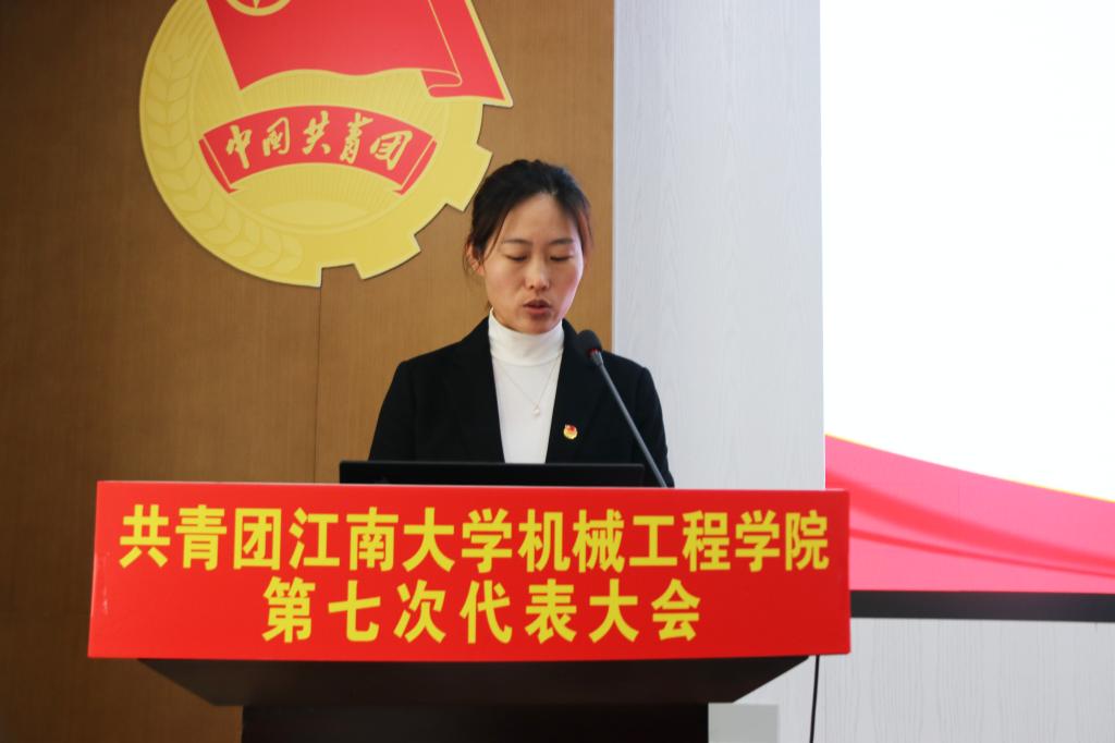 高雪梅代表学院党委对此次大会的召开表示热烈的祝贺,并对学院共青团和广大团员青年提出要求,期冀他们要有“任尔东南西北风”的定力、“直挂云帆济沧海”的魄力、“打铁还需自身硬”的自觉,在青春奋进中坚定理想信念、保持昂扬斗志、勇于实干担当。最后,她勉励广大团员青年努力践行“请党放心,强国有我”的青春誓言,在未来的共青团事业中,共同谱写机械学子的奋进新篇章。