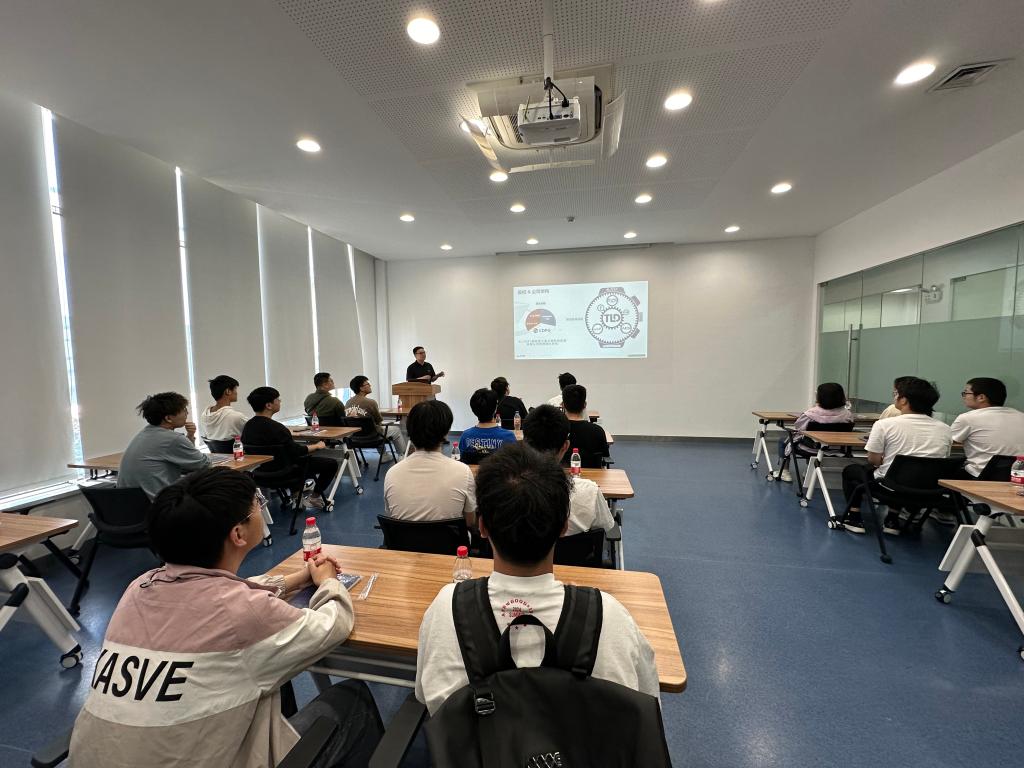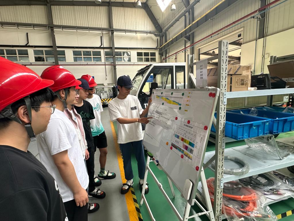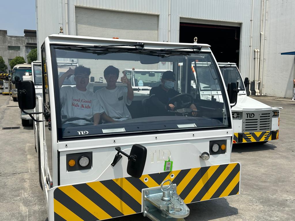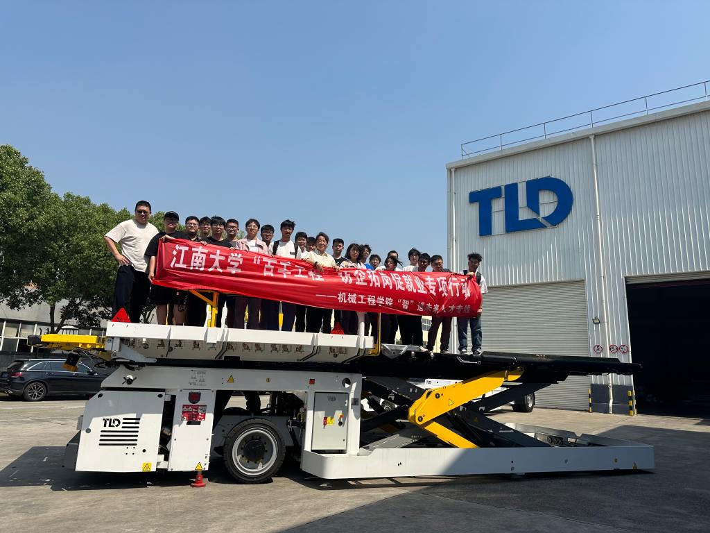 腾达航勤设备(无锡)有限公司人事行政经理周萍,产品支持经理黄志新,专家工程师吴凯华热情接待师生一行并带领参观企业。黄志新介绍了企业的发展历程、行业前景、部门构造、业务门类及人才需求,从航空地勤设备生产设计到维修售后服务做了详细讲解。吴凯华带领师生参观了地勤托运车、清污水车、升降平台等设备的生产车间,对发动机、变速箱、电池的选择组装及托运平台的功能进行展示,结合学生课程所学开展实地教学。师生就设备生产的智能化及未来航空地勤设备发展方向进行了深入交流探讨。最后,2022、2023届校友、项目工程师张金路与张潇带领师生体验了操作车的驾驶并分享了在腾达航勤的工作体验,现场氛围热烈。