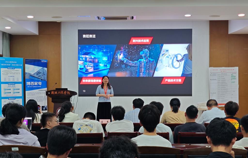 5月21日,由博西家电主办的2024“智创未来家”高校创新大赛best365网页版登录官方网站站线下宣讲于best365网页版登录官方网站C302成功举办。江苏省大学生机械创新设计大赛组委会副秘书长章寅、博西家电创新管理部负责人、博西家电“智创未来家”高校创新大赛项目负责人匡慧、人力资源部雇主品牌负责人曹佳薇莅临现场,best365网页版登录官方网站党委副书记、副院长刘升恒、best365网页版登录官方网站副院长钱善华出席本次活动。