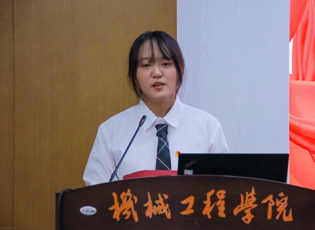 机械2303班刘淑涵代表本届学员发言。她表示,将珍惜此次来之不易的学习机会,坚定信仰,勇于砥砺前行;勇担责任,敢于直面困难和挑战;励志笃学,提升自我实力;甘于奉献,坚守赤子之心;在新的航程中书写属于自己的青春华章。培训班班主任宋京姝解读培训班培训课程安排。